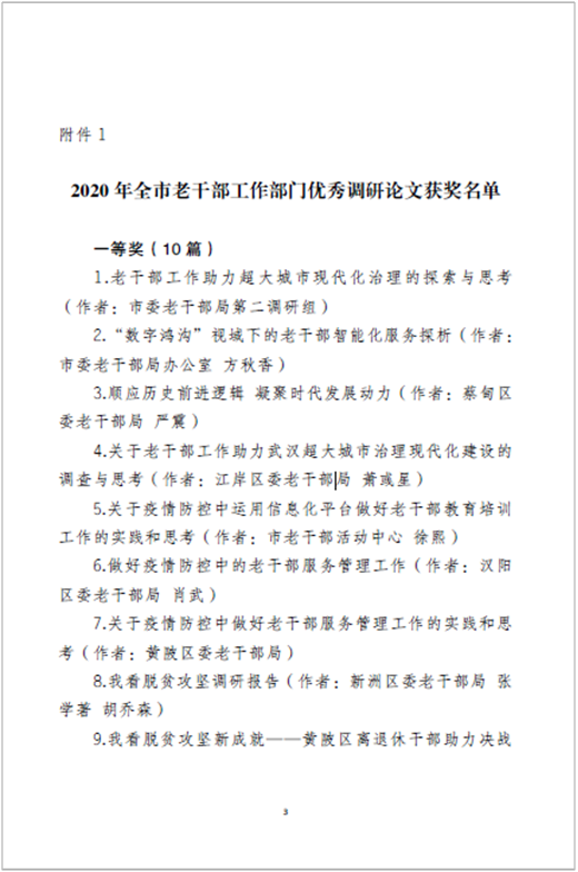 我校离退休老同志获全市老干部工作部门2020年度调研论文二等奖