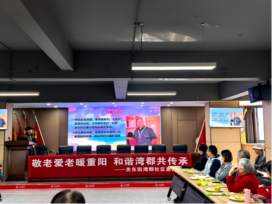 丹桂飘香迎佳节,敬老爱老暖人心。在重阳节到来之际,江汉大学关委副秘书长、武汉市关工委“跟党走”五老报告团成员,退休副教授张运利老师走进湾郡社区,参加社区举办的“敬老爱老暖重阳,和谐湾郡共传承”重阳节主题活动,通过分享亲身经历,宣讲党的方针政策,传递正能量。